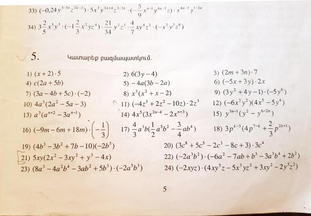 9) (3y2+4y-1)*(-5y6)=-15y8-20y7+5y6