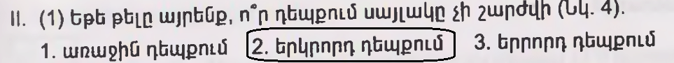 ՓՈՐՁ ԵՐԿՐՈՐԴ․ Նորից վերցրեցի այն սայլակը, որին ամրացված էր առաձգական մետաղյա թիթեղ։ Ճկեցի թիթեղը, կապեցի թելով։ Այն դրեցի հատակին, հատակի նկատմամբ այն գտնվում է դադարի վիճակում։ Մոտեցրեցի պատին և այրեցի թելը։ այրելուց հետո առաձգական թիթեղը ուղղվելով հարվածեց պատին, պատից ստացավ հարված և սայլակը պատից հետ շարժվեց։