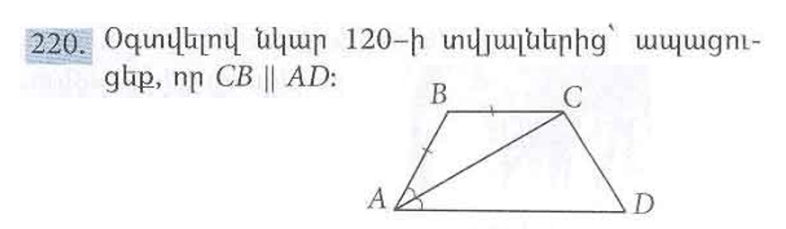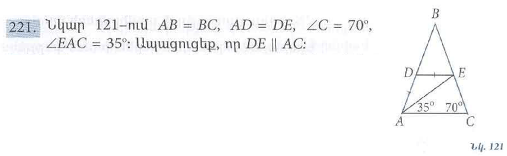 Երկրաչափություն Տնային աշխատանք Posted on 03.02.2021 by Նանե AB=BC <BAC=<CAD BC=CD <A=<D BC || AD <BAC=70o <DAE=70o-35o=35o DA=EC DE || AC Поделиться ссылкой: Click to share on X (Opens in new window) X Click to share on Facebook (Opens in new window) Facebook Like Loading... Related