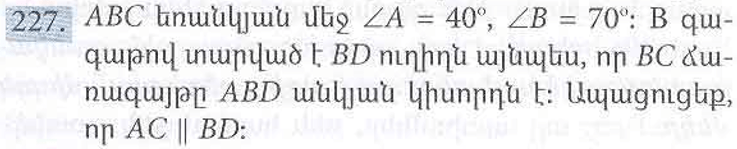 <CBD=70o Քանի որ <ACB=<CBD=70o, ուրեմն AC || BD