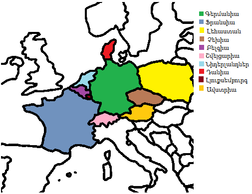Հիմա Գերմանիան Եվրամիության ամենամեծ անդամն է և տնտեսությամբ ամենազարգացածներից է: Գերմանիան ակտիվ մասնակցում է եվրոպական երկրների ինտեգրմանը: - Ուրվագծային քարտեզի վրա նշել Գերմանիայի հարևան պետությունները, ափերը ողողող ջրային ավազանները: