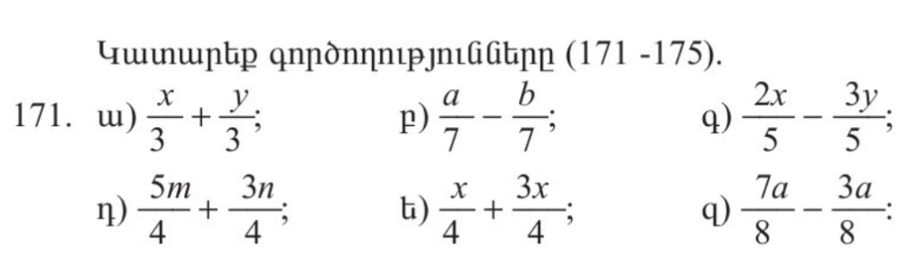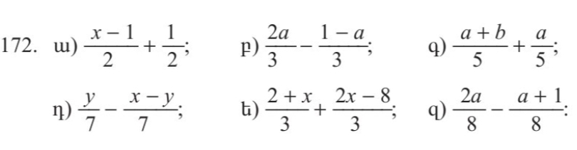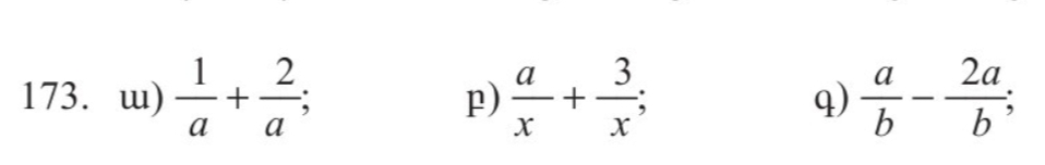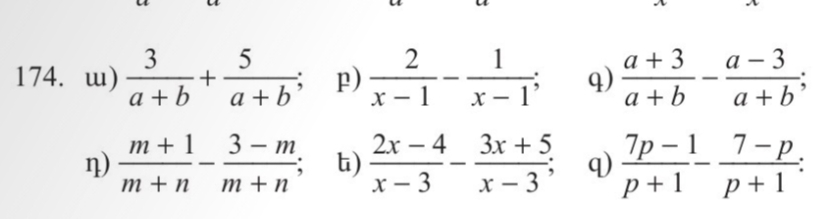 գ) a+3/a+b — a-3/a+b=a+3/a+b — (a-3)/a+b=a+3/a+b — a+3/a+b=6/a+b