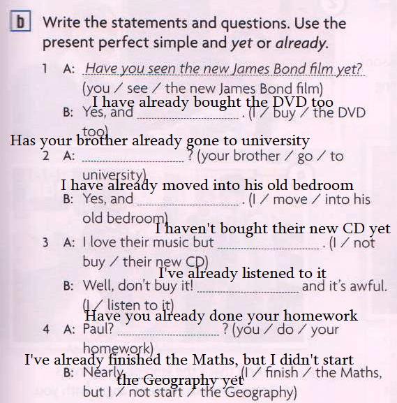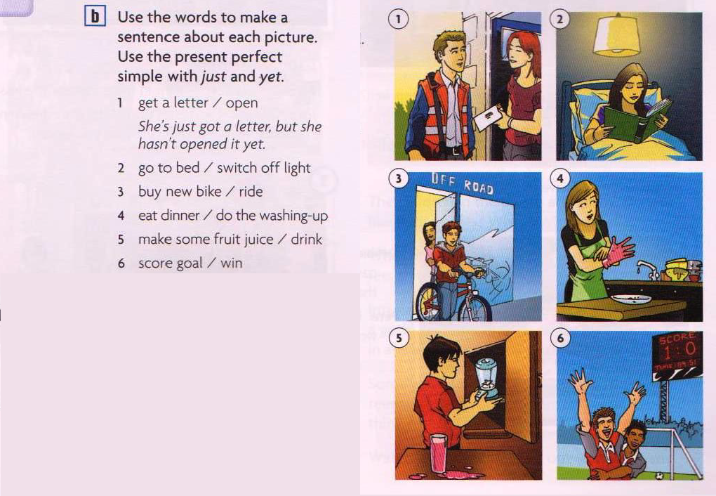 4. She just ate the dinner, but hadn’t done the washing-up yet.