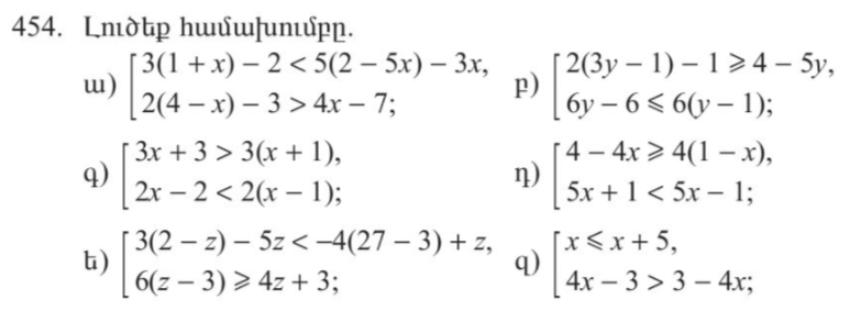 դ) [ 4 — 4x ≥ 4 (1 — x)