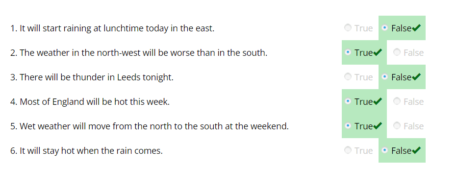 Listen to a weather forecast and answer the questions to practise and improve your listening skills.