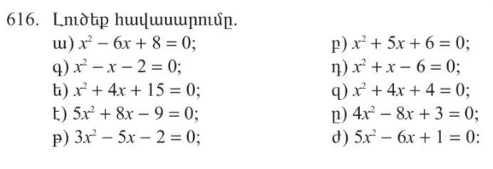 Առաջադրանքներ ՝ 616, 617, 618, 621
