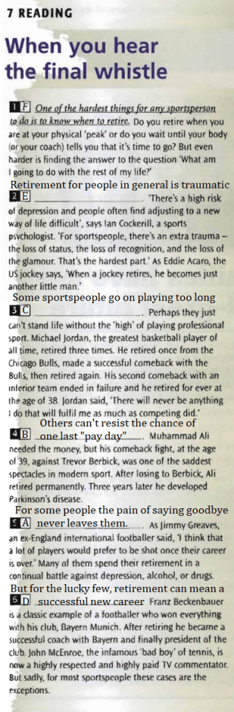 Reading. NEF Student’s Book slide 12- When you hear the final whistle/ slide 12 ex. c Complete the article with the sentences A-F