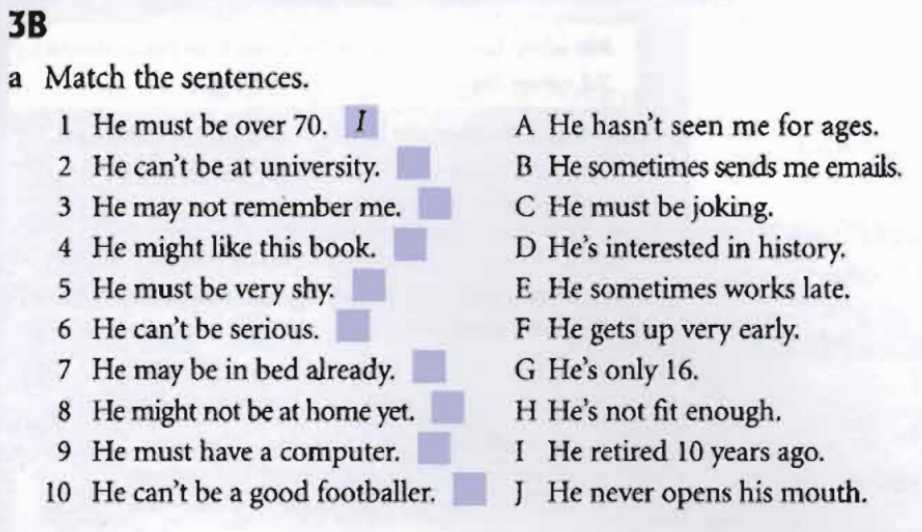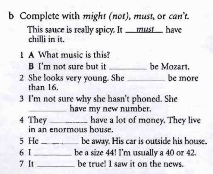 1 — might, 2 — must, 3 — might not, 4 — must, 5 — can’t, 6 — can’t, 7 — must