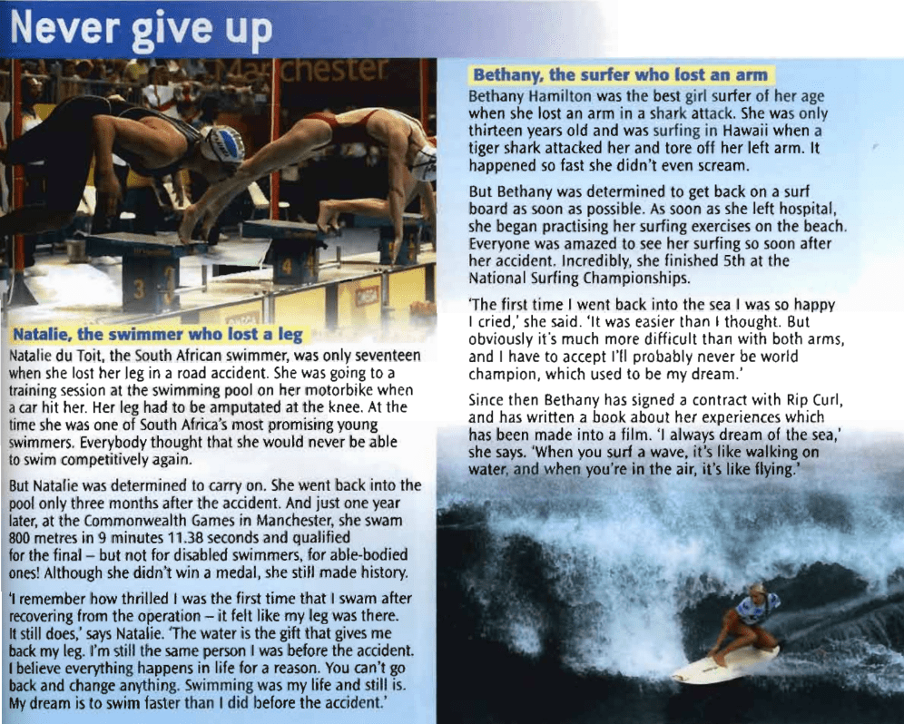 NEF Student’s Book Reading Never give up slide 48/ read the text, learn all the unknown words and be ready to discuss in class.