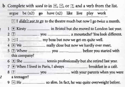 1. Kirsty used to live in Bristol but she moved to London last year.