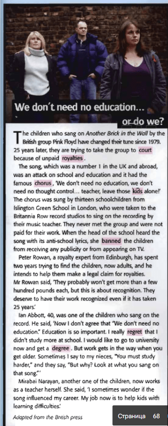 NEF Student’s Book slide 67, What do you remember? slide 68 Reading We don’t need education or do we?/ learn all the unknown words.