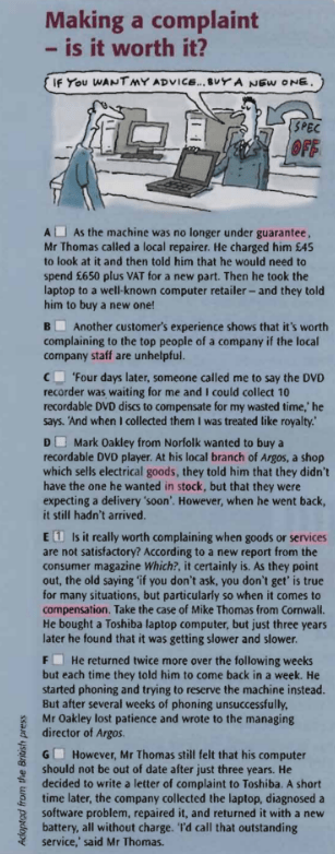NEF Student’s Book Reading slide 87 Making a complaint, is it worth it? Read the article about complaining and number the paragraphs in order 1-7