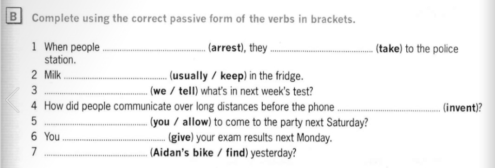 Write down the passive form of the verbs. Use the tense in brackets.