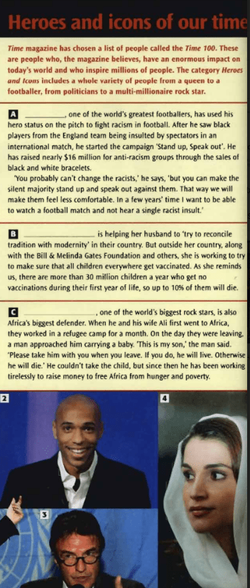 NEF Student’s Book Reading Heroes and Icons of our time slides 95-96