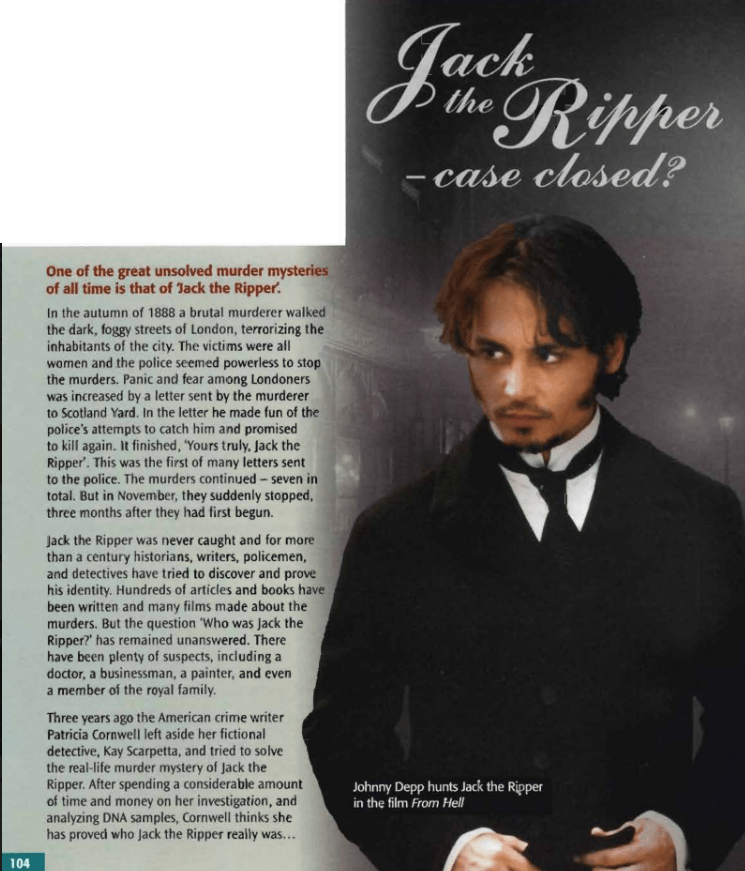NEF Student’s Book Reading slide 105, Murder mysteries, read the story, write down all the unknown words, and learn.