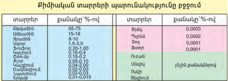 Կենդանի օրգանիզմները բաղկացած են մի շարք յուրահատուկ օրգանական նյութերից։ Բջիջներում ամենաշատ անօրգանական բաղադրիչը ջուրն է, որը զգալի մասն է կազմում: Կենդանի օրգանիզմները պարունակում են մի շարք տարրեր, որոնցից մոտավորապես 98%-ը կազմում են թթվածինը, ածխածինը, ազոտը և ջրածինը: Լրացուցիչ 1,9%-ը ներառում է ծծումբ, ֆոսֆոր, քլոր, կալիում, մագնեզիում, նատրիում, կալցիում և երկաթ: 0,1%-ից պակասը բաղկացած է այնպիսի տարրերից, ինչպիսիք են ցինկը, յոդը և ֆտորը, որոնք կարևոր դեր են խաղում բջջային ֆունկցիաներում՝ կազմելով օրգանական միացությունների մաս, ինչպիսիք են ֆերմենտները, վիտամինները և հորմոնները՝ ազդելով դրանց կենսաբանական գործունեության վրա: