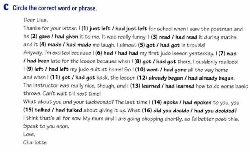 Thanks for your letter. I had just left for school when I saw the postman and he ghave it to me. It was really funny! I read it during maths and it made me laugh. I almost got in trouble!