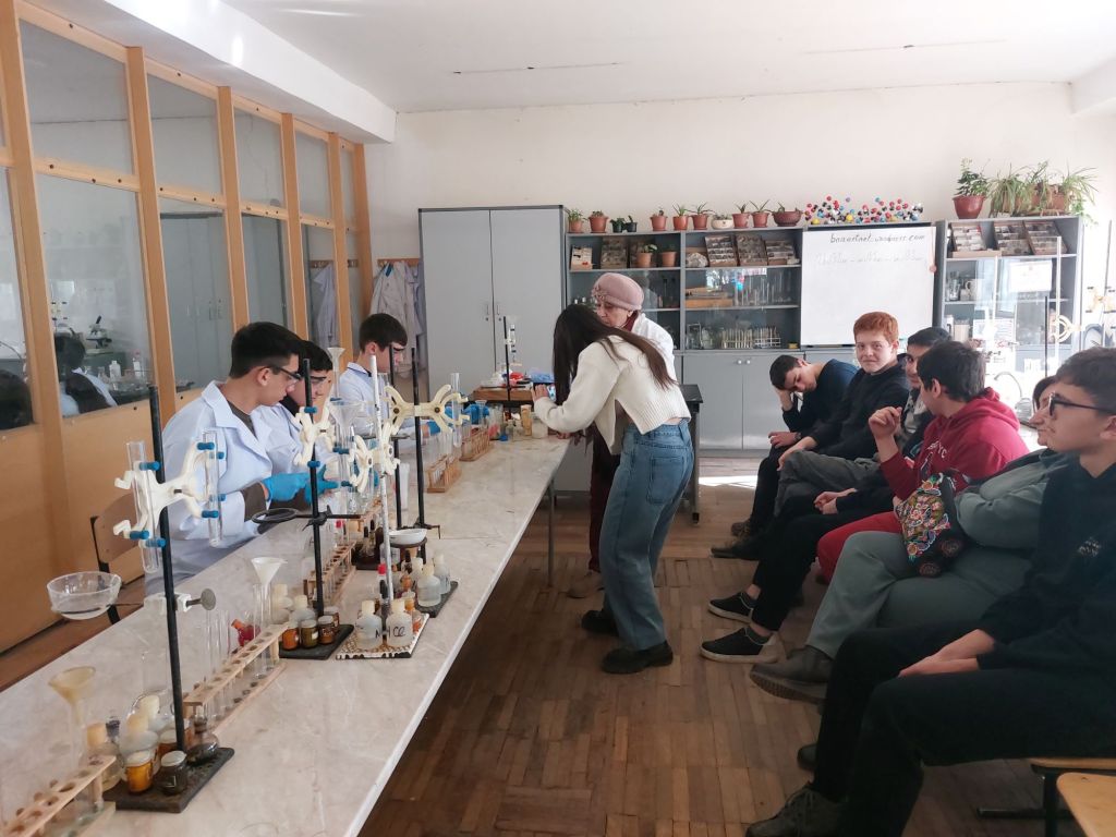 Մեր օրը այսօր սկսեցինք քննարկելով և լրացնելով երկու հարցաշար, առաջինը` հարցեր էին, որտեղ պետք է արտահայտեինք մեր կարծիքը տարբեր թեմաների շուրջ, թե ինչն է մեզ համար ամենա֊…։ Իսկ երկրորդը` բնագիտական հարցեր էին։ Երկրորդ դասաժամին մենք գնացինք քիմիայի լաբորատորիա` տարատեսակ փորձեր կատարելու և շարունակեցինք նաև չորրորդ ժամին։ Առաջին փորձը կոչվում է <<Հրաբուխ>>, երկրորդը` ջրածնի ստացում և այրում, երրորդը` օսլայի բացահայտումը սննդամթերքի մեջ։ Երրորդ դասաժամը անցկացրինք կավագործությամբ զբաղվելով։
