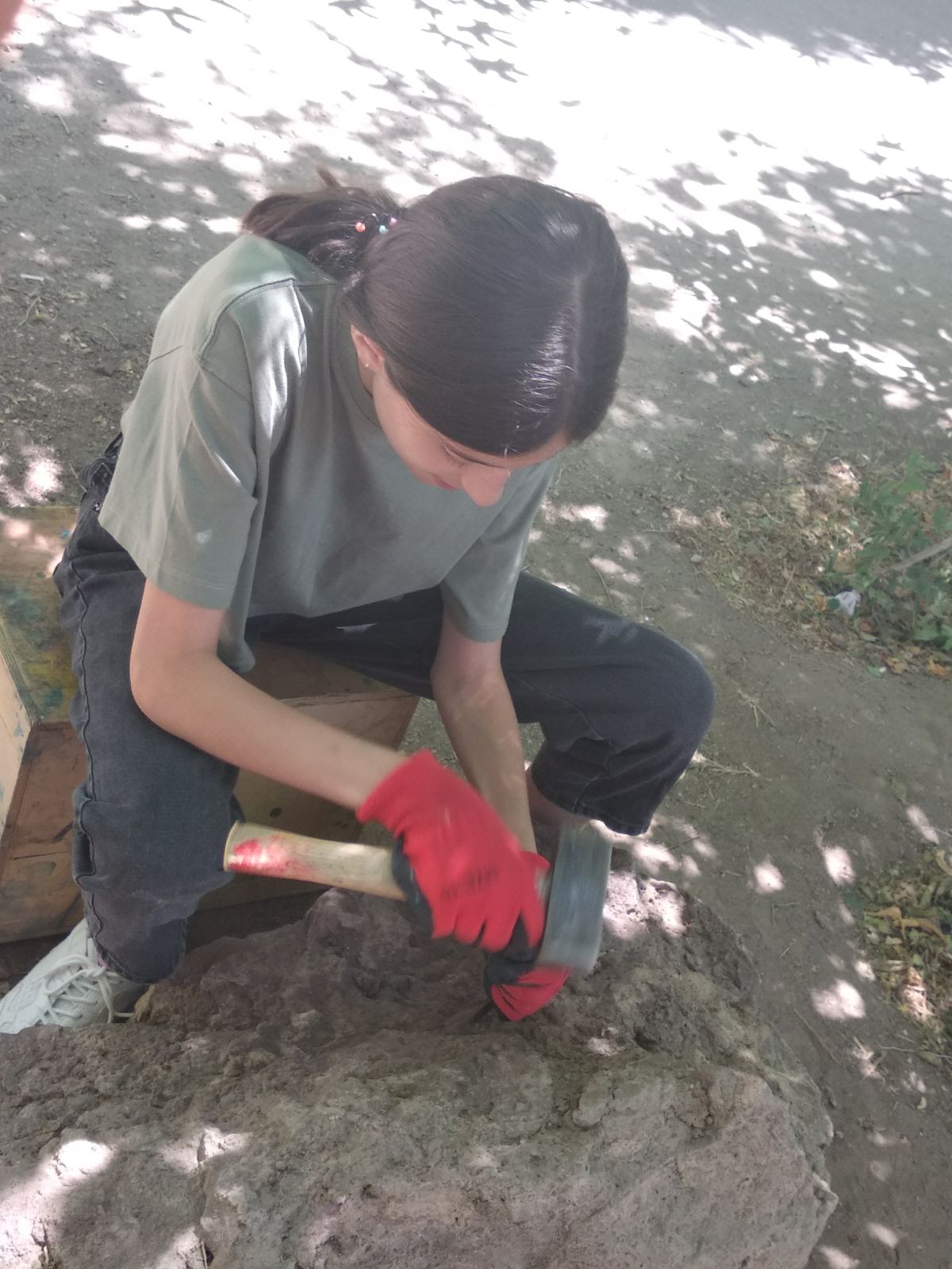 Այսօր տասներուերորդ դասարանցիների վերջին զանգն էր: Հետո եկան կրտսեր դրոցի աշակերտները և նրանց հետ պարեցինք և երգեցինք: Հետո գնացինք հեծանիվ քշելու: Դրան հաջորդեց քանդակագործությունը: Այս անգամ մենք մեծ քարերի մեջ փոսեր էինք անում, որոնց մեջ հետագայում պետք է ծաղիկներ տնկեն: Հետո գնացինք Սարալանջ՝ բույսերը խնամելու: Հետո երկար ընդմիջում էր և վերջ: Այսքանը: