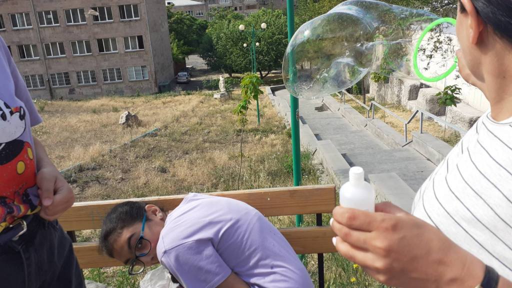 Այսօրը շատ զվարժալի օր էր: Մենք սկզբից հավաքվում էինք և հետո գնացինք Սարալանջ: Այնտեղ մենք պատրաստում էինք մեծ թասերի մեջ հեղուկ, որի մեջ կթաթախենք ձողի վրա կլորակներ և պղպջակներ կփչենք: Այդ ձողերի մի մասը մենք էինք պատրաստել բարակ և երկար երկաթի կտորներից: Այդպես մենք այդ թասերի մեջ ջուր լցրեցինք և ջրի մեջ խառնեցինք պետք եկող նյութերը և սկսեցինք մեր փուչիկները փչել: Շատ զվարճալի էր, բոլորը փչում էին և ստացվեցին շատ փուչիկներ: Շատ գեղեցիկ էր: Հետո մենք գնացինք տեխնոլոգիայի և այնտեղ զբաղվեցինք նկարչությամբ: Դրանից հետո մեզ մոտ ընտրության ժամ էր և այսպիսով վերջացավ այս օրը: