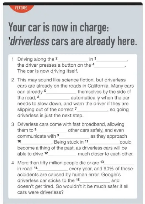 Navigate Your car is now in charge, ex2a, b slide 57, After reading the comments on slide 58, try to write your viewpoint on the question “Are you for or against driverless cars”