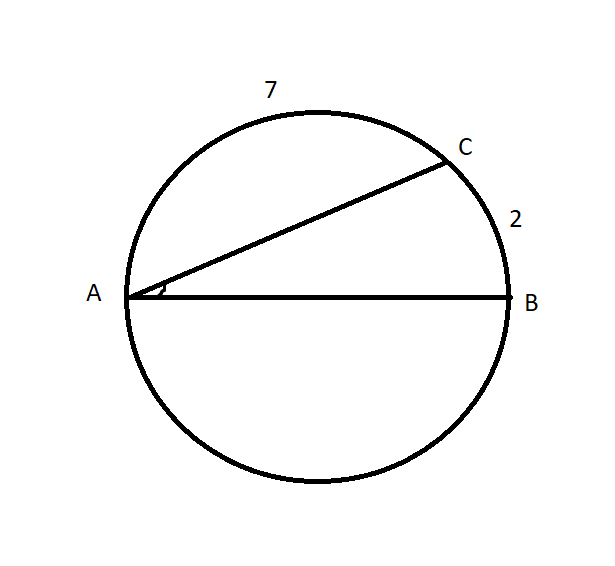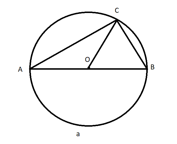 <ACB = ∪AaB : 2 = 180 : 2 = 90o
