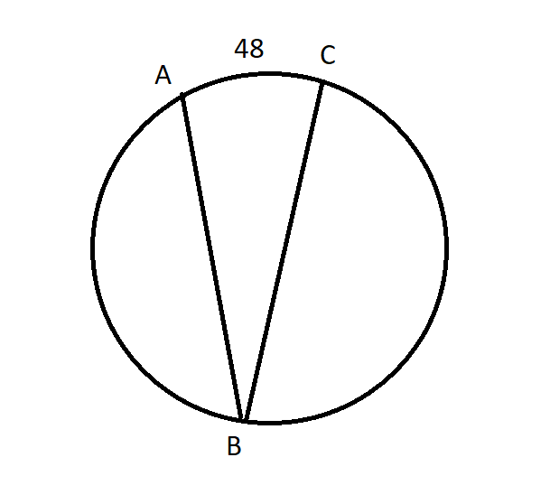 <ABC = ∪AC : 2 = 48 : 2 = 24o