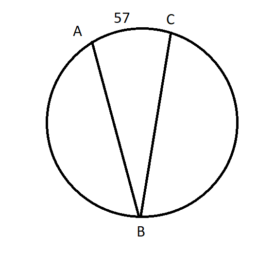 <ABC = ∪AC : 2 = 57 : 2 = 28,5o