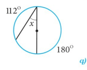 x = (360 — (112 + 180)) / 2 = 68/2 = 34o