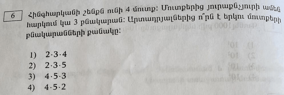 Պատ.՝ 4*5*3: