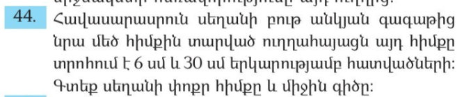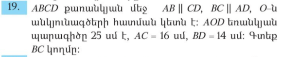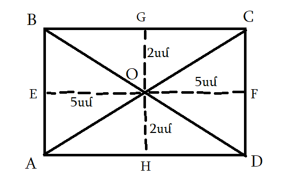 3․Ուղղանկյան անկյունագծերի հատման կետի հեռավորությունները կից կողմերից 2 սմ և 5 սմ են: Գծիր գծագիրը և հաշվիր ուղղանկյան պարագիծը: