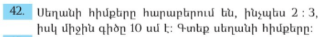 4․Ուղղանկյան կողմերը հարաբերում են ինչպես 6:9, իսկ պարագիծը 264 սմ է: Հաշվիր ուղղանկյան կողմերը: