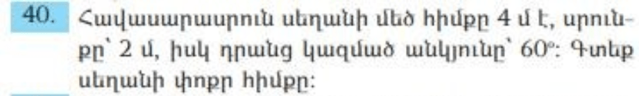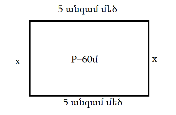 2․Ուղղանկյան պարագիծը 60 մ է և նրա մի կողմը 5 անգամ մեծ է մյուսից: Հաշվիր ուղղանկյան կողմերը: