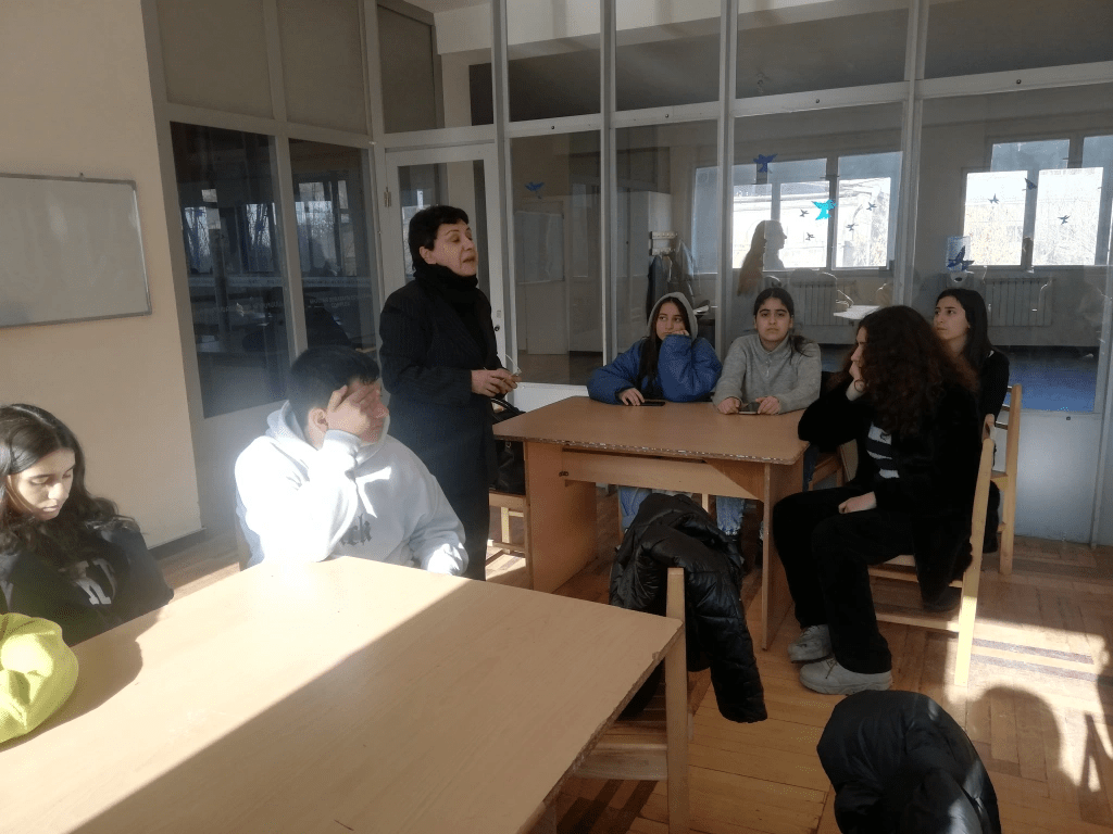 Ընկեր Նունեի հետ մենք անգլերենից որոշ նյութեր ընթերցեցինք: Նաև խաղացինք խաղ, որի անունն է Պոլիտեա: Նաև դիտել ենք ֆիլմ “Աննա Ֆրանկի օրագիրը” և քննարկել այն: