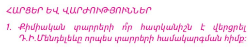 1) արծաթը մարմին է, սկահակը՝ նյութ