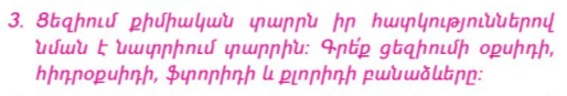 3. Ո՞ր պինդ նյութի մոլեկուլն է երկատոմ.